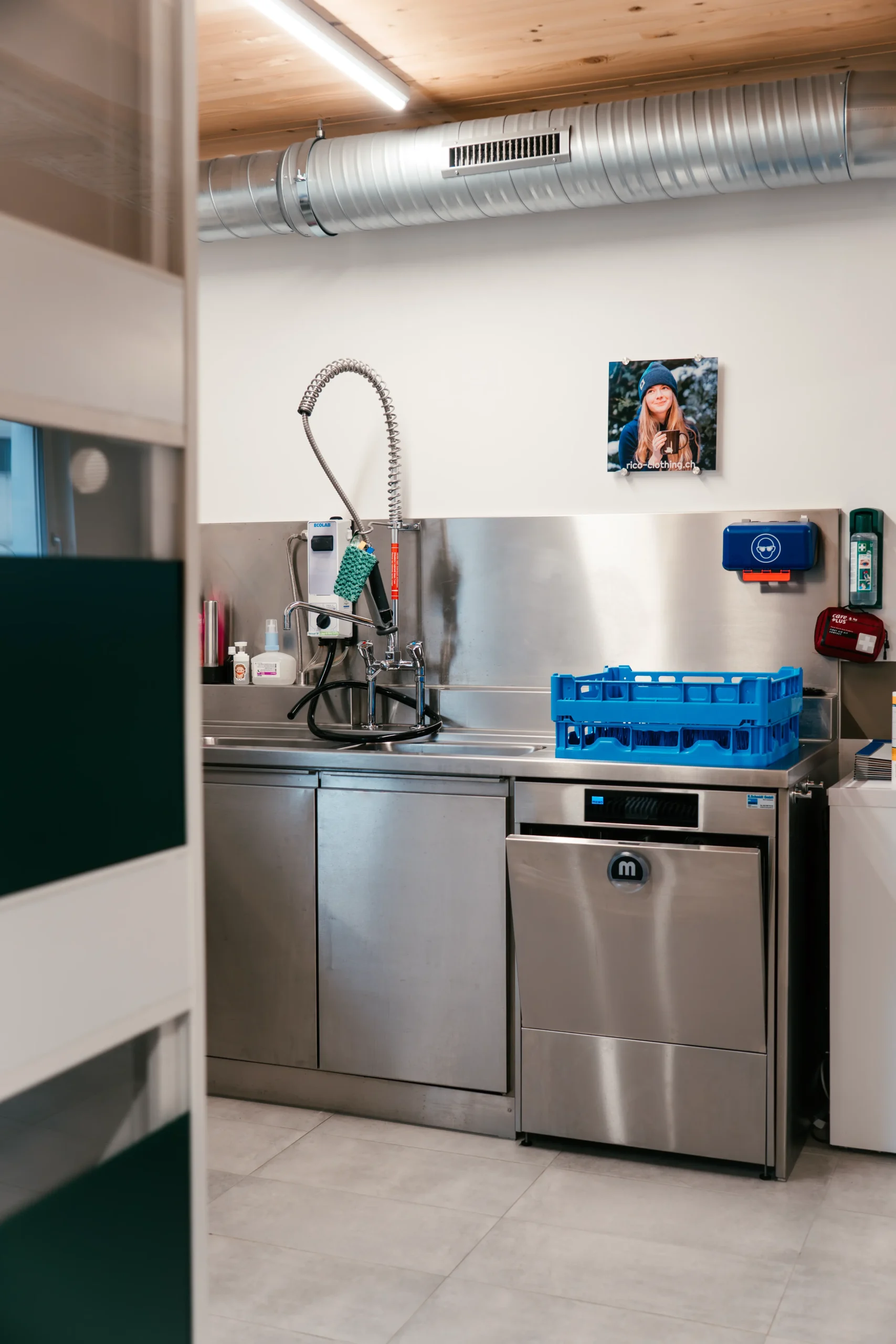The food is prepared in a specially equipped hedgehog kitchen. This is comparable to a professional catering kitchen made of chrome steel and has an industrial dishwasher.